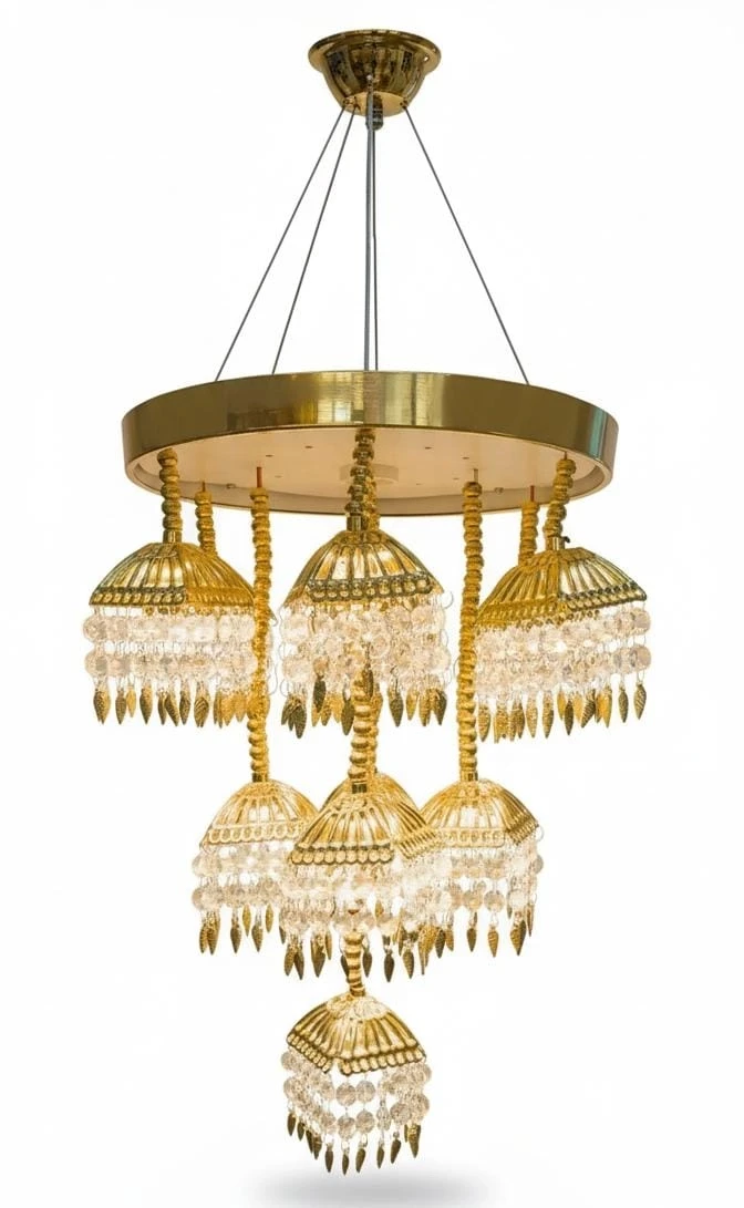 Our Moti Joomer Tali is a stunning piece featuring intricate pearl embellishments, adding a regal and elegant touch to your decor. Ideal for festivities, weddings, or enhancing the ambiance of special occasions. Let the radiant glow from this beautiful Joomer Tali create an atmosphere of timeless beauty and grace. Illuminate your celebrations with the exquisite charm of our Moti Joomer Tali!
